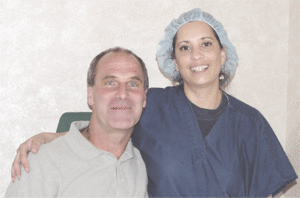Vince Shields, owner of Kenny’s in Southampton says farewell to Sue Cross, head LASIK coordinator.