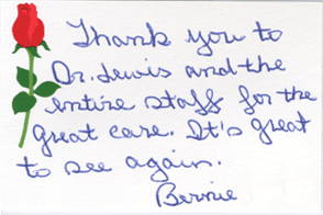 Bernie Thank you to Dr. Lewis and the entire staff for the great care. It’s great to see again. Bernie