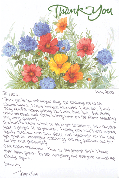 Once again thank you – this is the greatest gift I have ever been given. To see everything and everyone around me clearly again.