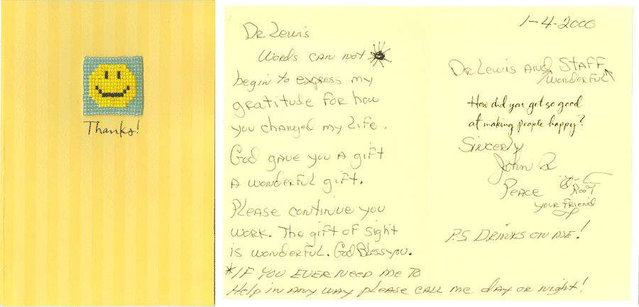 Please continue your work. The gift of sight is wonderful. God Bless you.